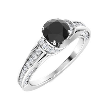Vintage 3 Ct Round Cut Onyx Black & White Diamond Solitaire with Accents Wedding Engagement Ring in 925 Sterling Silver White Gold Finish