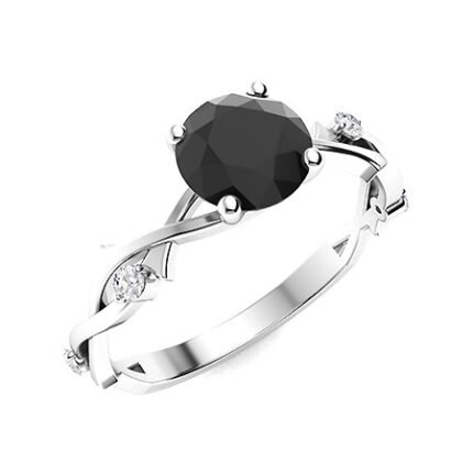 2.5 Ct Round Cut Onyx Black Diamond Solitaire intertwined Twig Band Wedding Engagement Ring in 925 Sterling Silver White Gold Finish