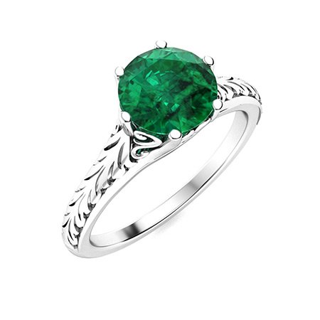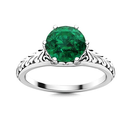 2 Ct Round Cut Emerald Green Diamond Filigree Design Solitaire Wedding Engagement Ring in 925 Sterling Silver White Gold Finish