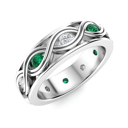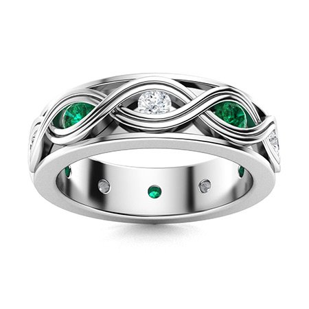 0.6 Ct Round Cut Emerald Green Diamond Twisted Band Infinity Design Wedding Engagement Band Ring for Women in 925 Sterling Silver White Gold Finish