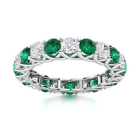 Home Engagement Rings 1.5 Ct Round Cut Green & White Diamond Full Eternity Alternative Diamond Wedding Band for Women in 925 Sterling Silver White Gold Finish