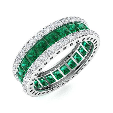 Home Engagement Rings 2.5 Ct Princess Cut Green & White Diamonds Full Eternity Channel Set Wedding Engagement Band Ring in 925 Sterling Silver White Gold Finish