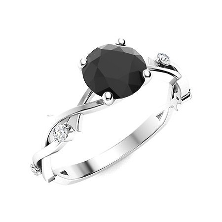 Home Engagement Rings 2.5 Ct Round Cut Onyx Black Diamond Solitaire intertwined Twig Band Wedding Engagement Ring in 925 Sterling Silver White Gold Finish