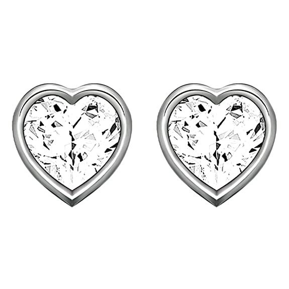 Home Earrings 2 CT Round Cut White Simulated Diamonds Heart Design Anniversary Stud Earrings for Women & Girls in Sterling Silver White Gold Finish