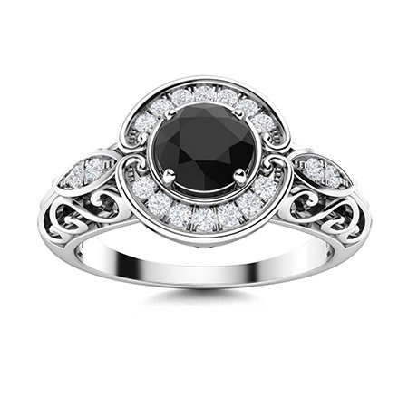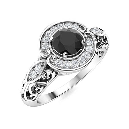 Home Engagement Rings Vintage 2.7 Ct Round Cut Onyx Black Diamond Halo Filigree Design Wedding Engagement Ring in 925 Sterling Silver White Gold Finish