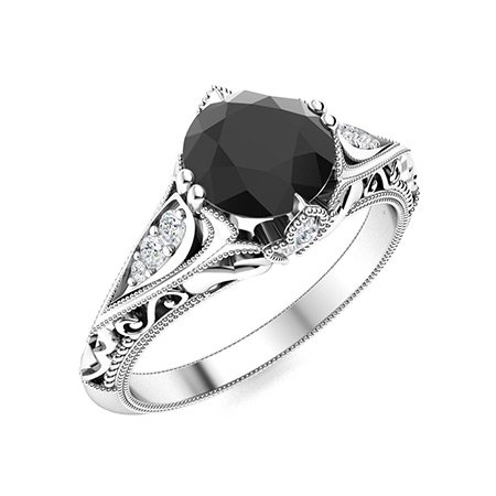 Home Engagement Rings Vintage 2.8 Ct Round Cut Onyx Black Diamond Solitaire Filigree Milgrain Design Engagement Ring in 925 Sterling Silver White Gold Finish