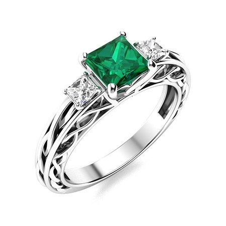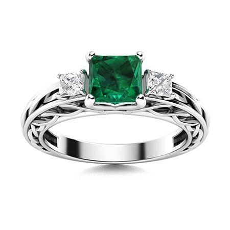Home Engagement Rings Vintage 3 Ct Princess Cut Emerald Green & White Diamond Three Stone Filigree Design Engagement Ring in 925 Sterling Silver White Gold Finish