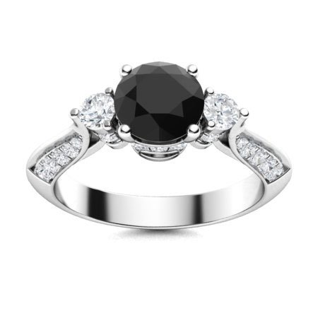 Home Engagement Rings Vintage 3 Ct Round Cut Onyx Black & White Diamond Solitaire with Accents Three Stone Engagement Ring in 925 Sterling Silver White Gold Finish
